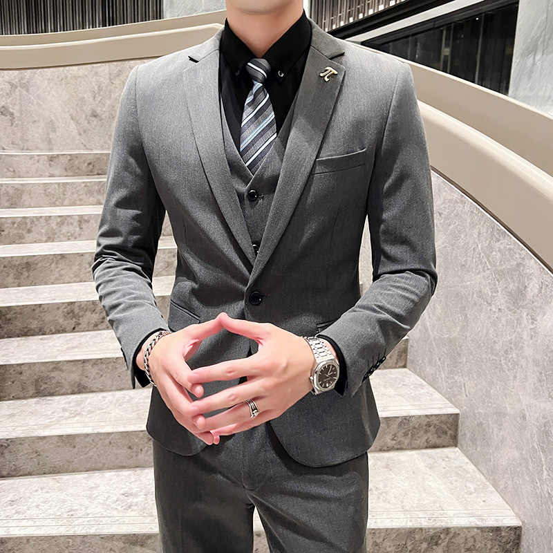 Setelan pakaian pria tiga potong pakaian formal profesional bisnis setelan kecil ramping Korea gaun pernikahan pengantin pria terbaik