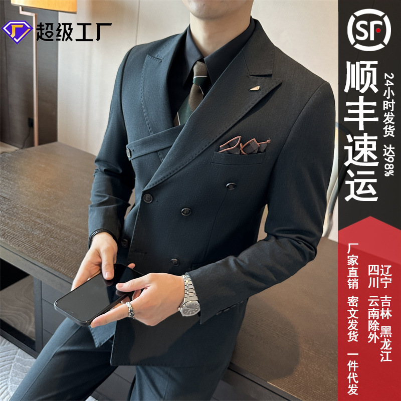 Jas Tuan Rumah Lintas Batas 3 Set 2 Gesper Kasual Perdagangan Luar Negeri Pakaian Pernikahan Pengantin Pria Setelan Pria