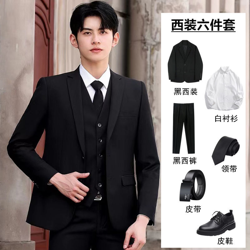 Jas Versi Korea Set Lengkap Pria Model Musim Semi dan Musim Gugur Gaun Pengantin Pria Setelan Enam Potong Pria
