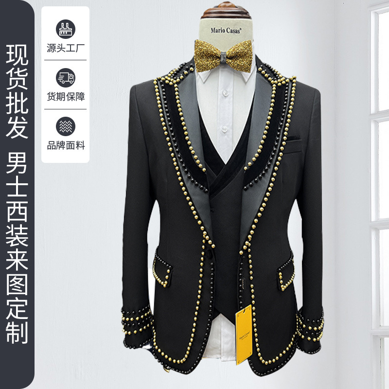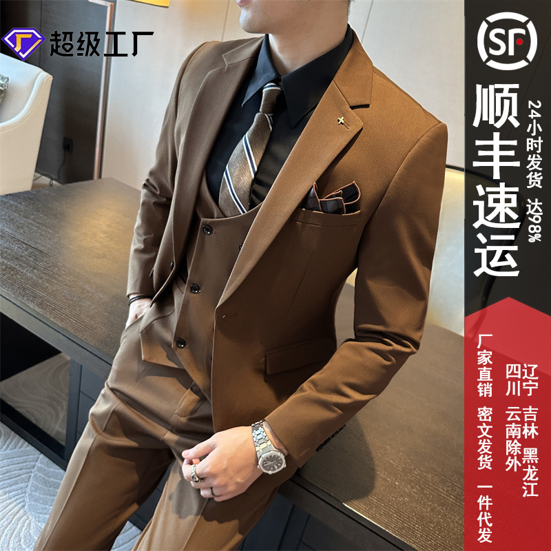 Setelan Jas Pengantin Pria Perdagangan Luar Negeri Setelan Tiga Potong Pakaian Kerja Kasual Slim Fit Versi Korea Pakaian Pria Lintas Batas
