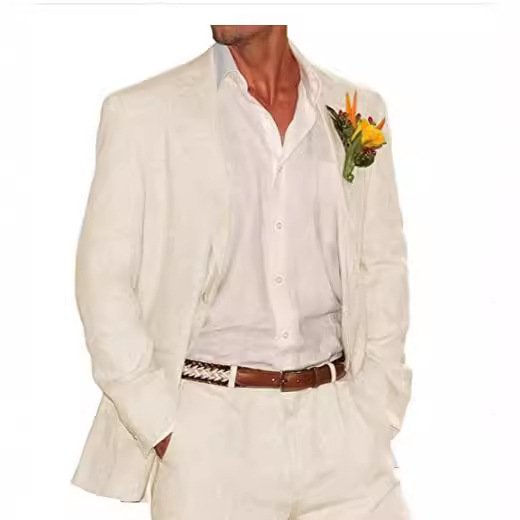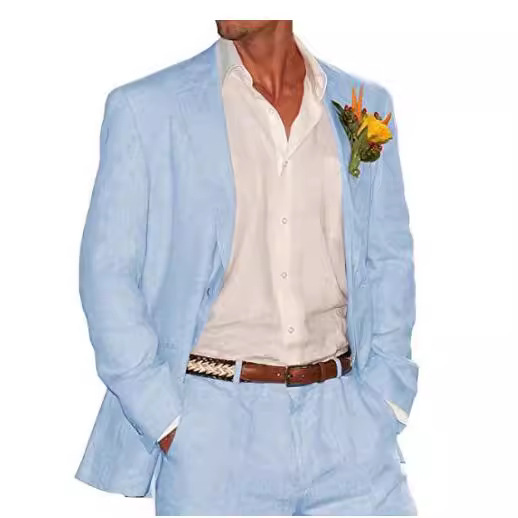 Setelan Flax Tuan Rumah Lintas Batas Set 2 Set 1 Kancing Kerah Kasual Pakaian Pernikahan Pengantin Pria Perdagangan Luar Negeri Setelan Pria