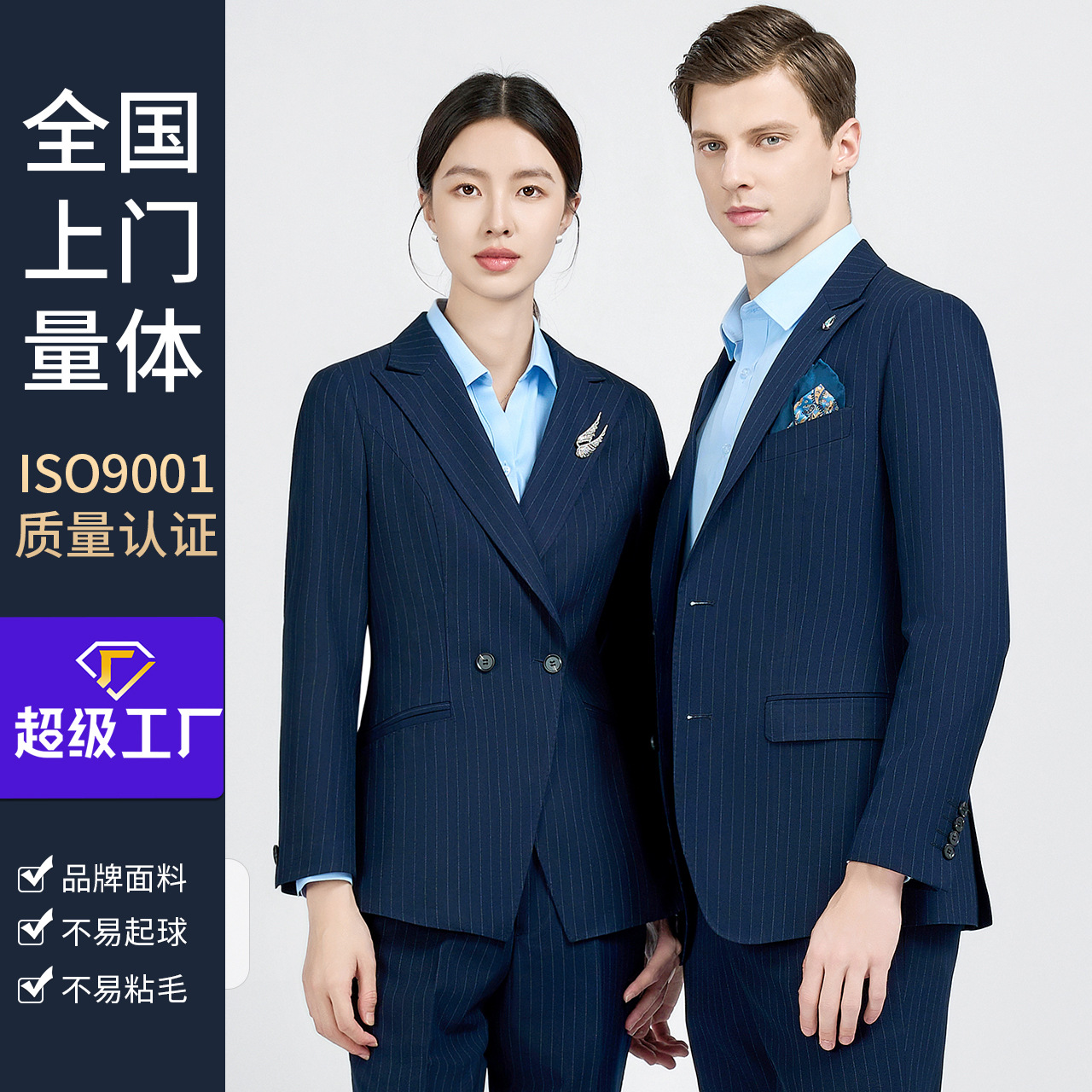 Setelan pakaian pernikahan pria, setelan pria bisnis untuk pengantin pria, pakaian bisnis ruang pengantin tampan, bergaris biru laut