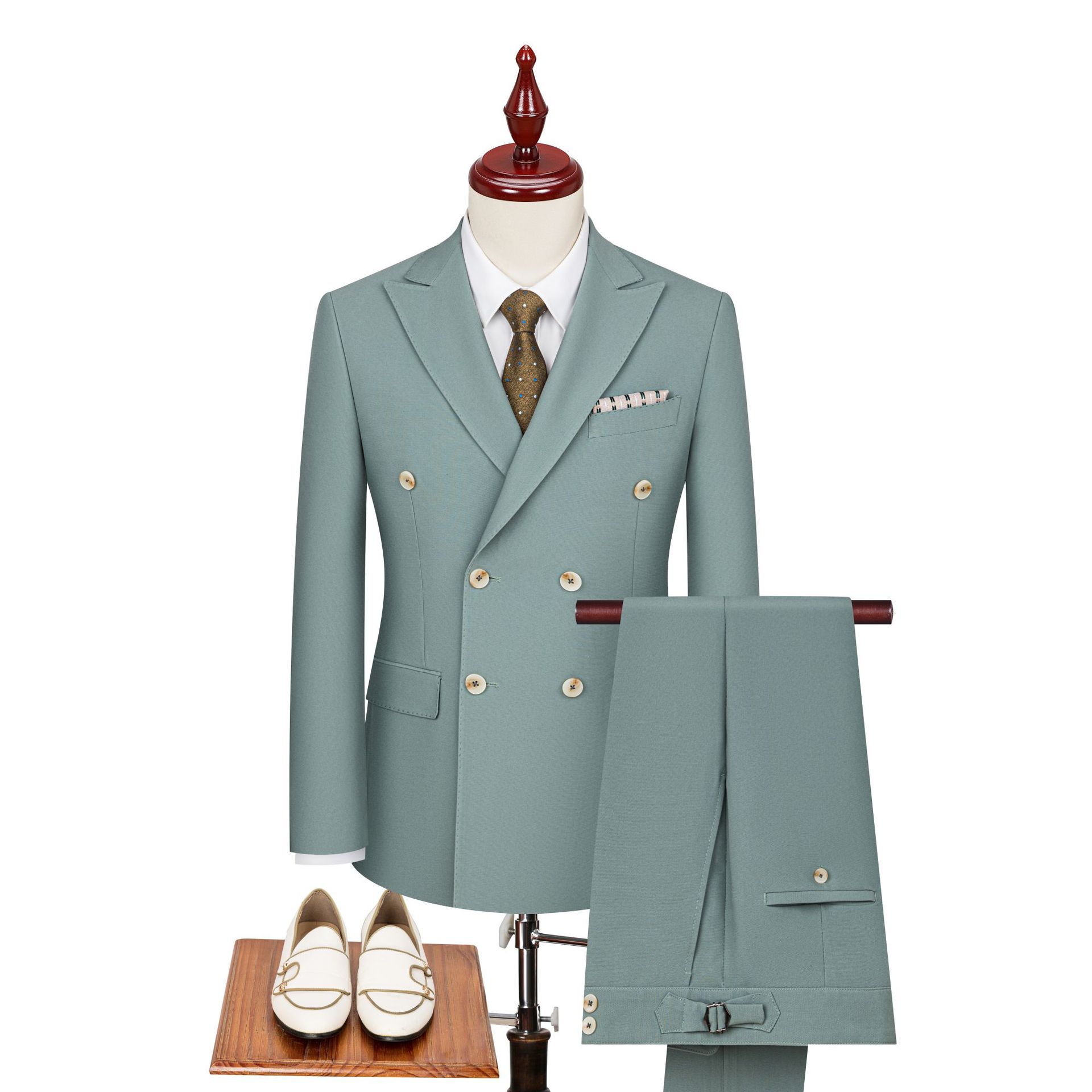 Setelan pengiriman satu potong untuk pria, Gaun kerja formal ramping warna polos berkancing dua baris, pakaian pengantin pengiring pengantin tiga potong