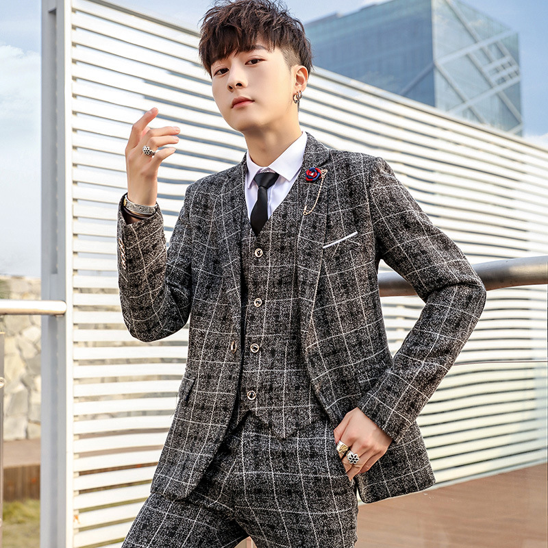 Setelan pakaian pria Cross-Border, setelan pria musim gugur dan musim dingin, dua kancing, tiga potong, gaya Korea, slim fit, pengantin pria
