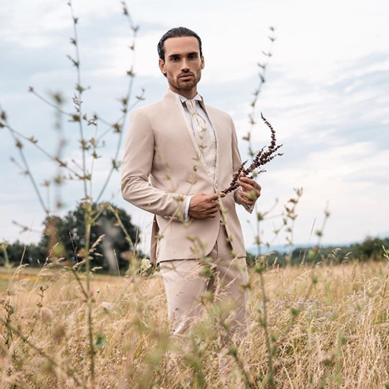 Pakaian kasual bisnis khusus Khaki pria, pakaian dua potong setelan pengantin pria terbaik setelan perjamuan pernikahan