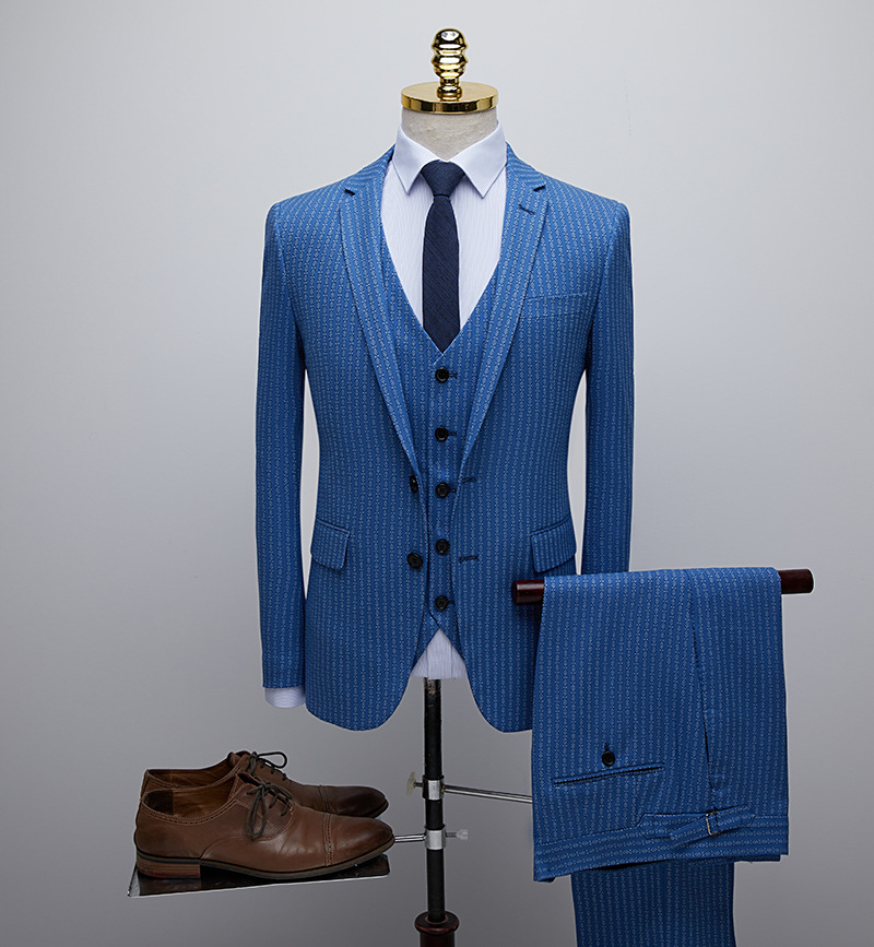 Setelan pakaian butik tiga potong untuk pria, gaun pas badan gaya Korea untuk pengantin pria