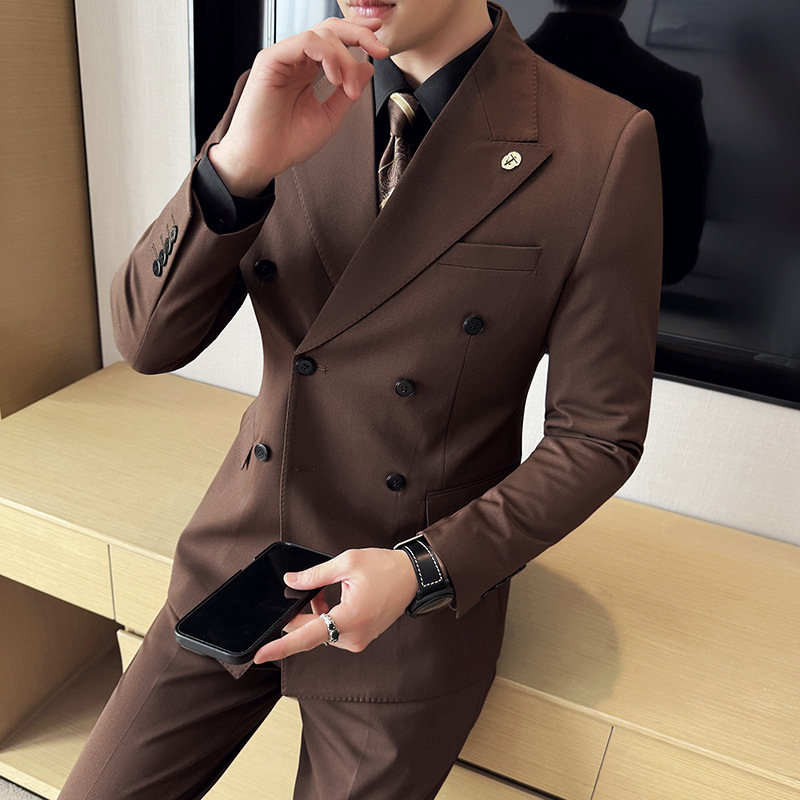 Jas pria dengan kerah runcing, jas double-breasted, pakaian formal bisnis, pakaian pengantin pria, slim fit pesanan khusus