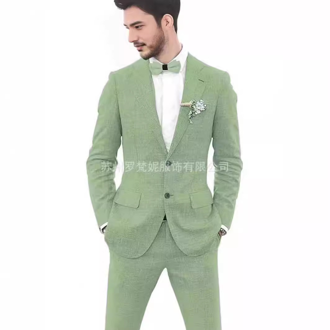 Pakaian kasual bisnis linen perdagangan luar negeri Amazon baru setelan pria pengantin pria setelan perjamuan pernikahan