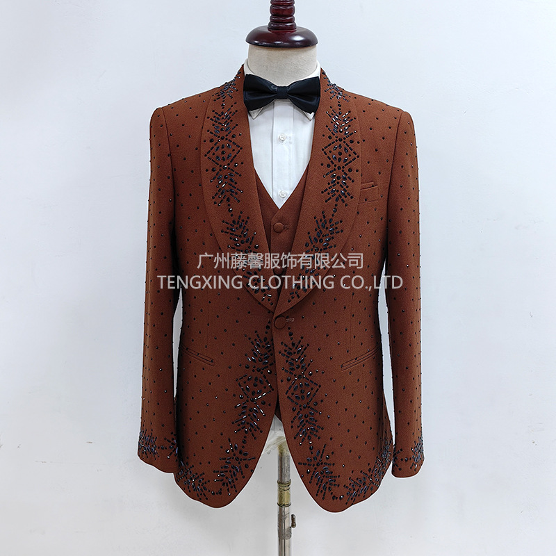 Kustom Grosir Berlian Panas Jas Pernikahan Pria Setelan Pesta Pria Pakaian Tweet Pengantin Pria Slim Fit Setelan Suit