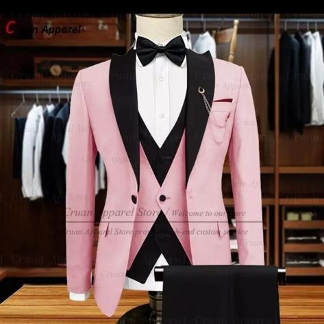 Setelan pakaian kasual bisnis khusus pria, pakaian dua potong untuk pengantin laki-laki, perjamuan pernikahan, setelan lintas batas merah muda