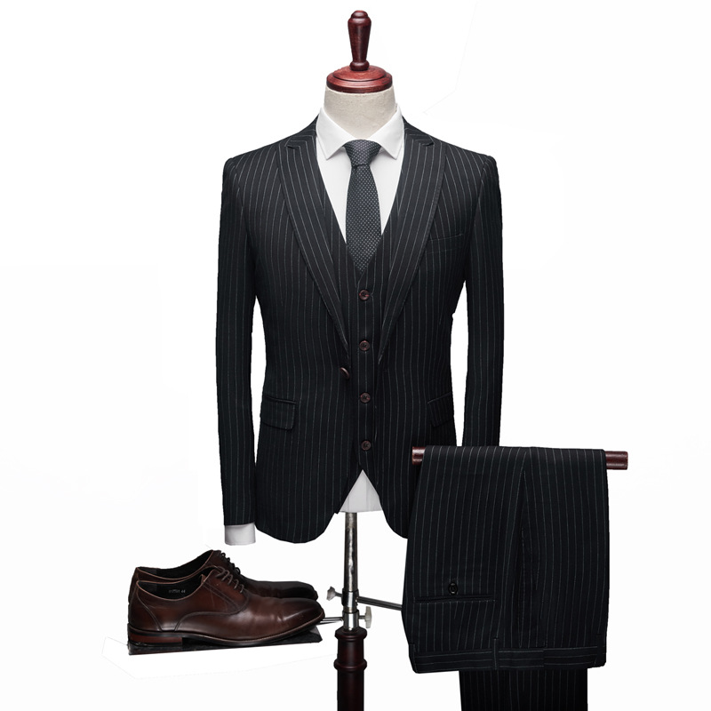 Setelan pakaian pria bergaris, setelan pria terbaik Korea, pakaian pernikahan pengantin pria, setelan formal bisnis kasual, setelan tiga potong