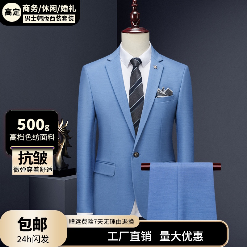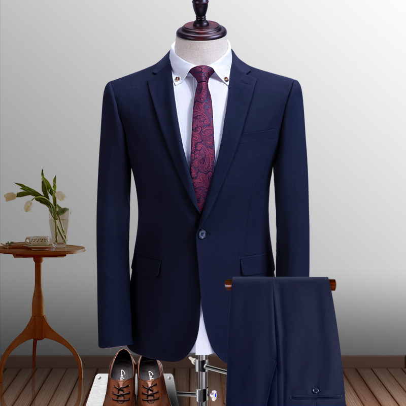 Setelan pakaian pria gaya Korea, setelan slim-fit, pakaian formal profesional, pakaian kerja, pakaian pengiring pengantin, gaun pernikahan