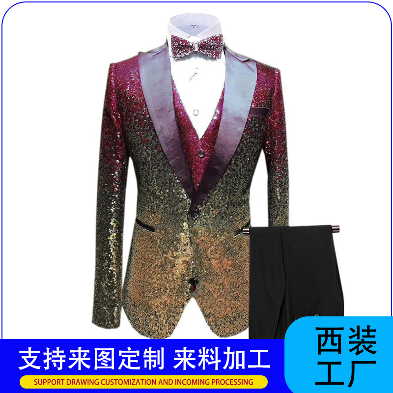 Jas pria tiga potong berpayet, penjualan langsung pabrik, untuk penampilan panggung, pernikahan, dan pengantin pria
