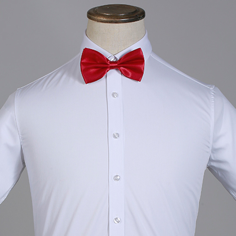 Kemeja dasi kupu-kupu gaya Korea pria, aksesori pakaian pernikahan pengantin pria hitam merah