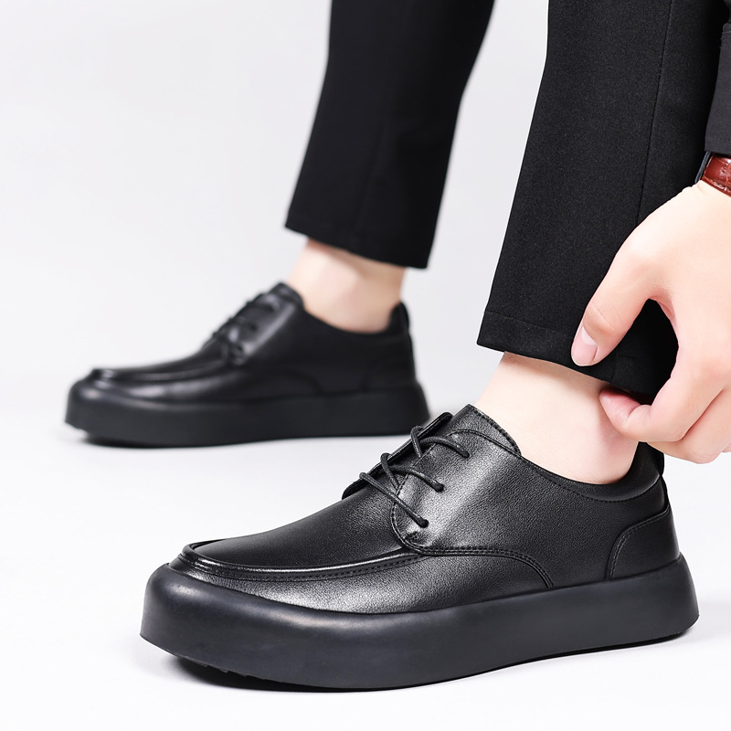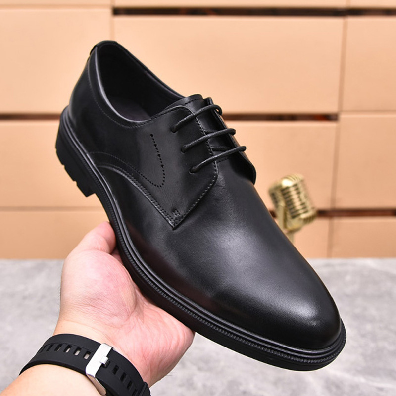 Sepatu Kulit Pria Pakaian Formal Bisnis Musim Semi Musim Gugur 2024 Model Baru Kasual Inggris Setelan Warna Hitam Sepatu Pengantin Pria