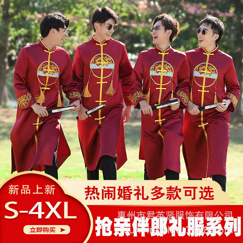 Pakaian pengiring pengantin pria, gaya Cina pria musim dingin baru 2024 gaun pernikahan gaya China setelan Tang pengantin wanita cheongsam