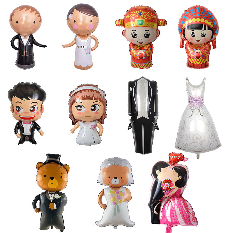 Gaun pengantin grosir balon foil pernikahan seri pengantin dan pengantin pria balon aluminium pasangan baru Ciuman pernikahan Barat