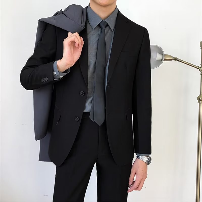 Setelan pakaian pria profesional, setelan pakaian pernikahan pengantin pria gaya Korea, jaket formal ramping kasual kecil untuk pria