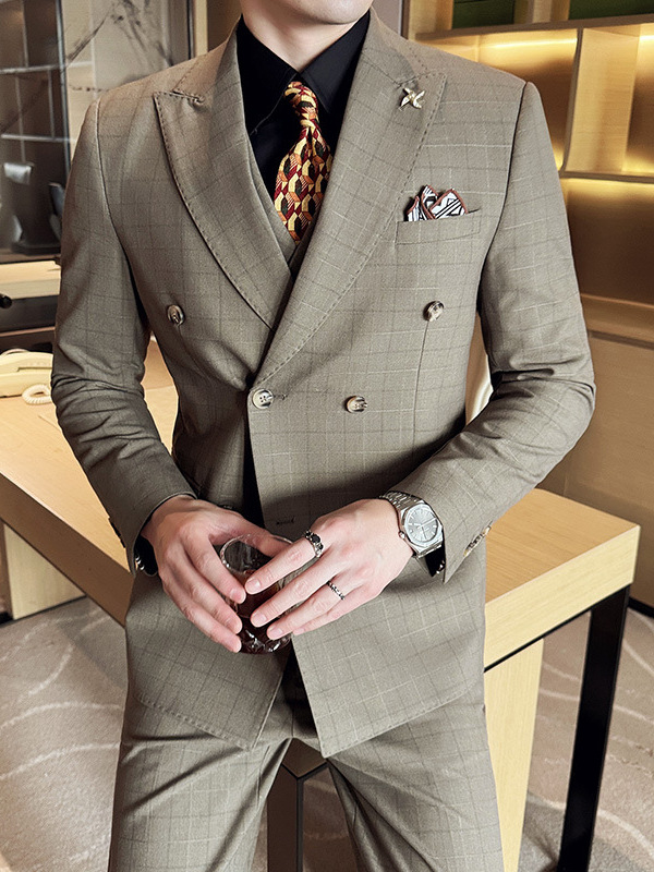 Setelan jas tiga potong kerah lapel rasa kualitas pria baru setelan jas tiga potong gaun pengantin laki-laki setelan kotak-kotak