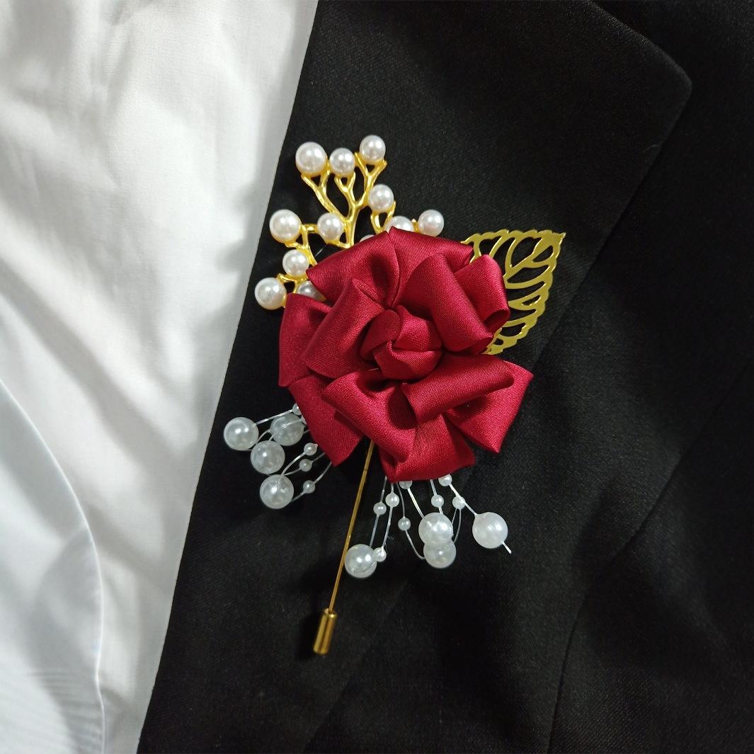 Setelan bros mempelai pria, kerah bunga gaya Korea, pin jas pernikahan, aksesori lencana sederhana