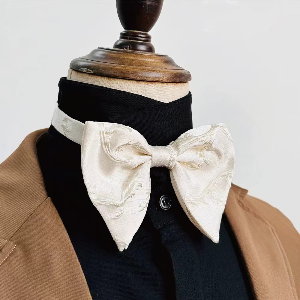 Kemeja pria dua lapisan poliester sutra tanduk besar dasi kupu-kupu high-end setelan perjamuan pernikahan baju pita pengantin pria merah putih hitam