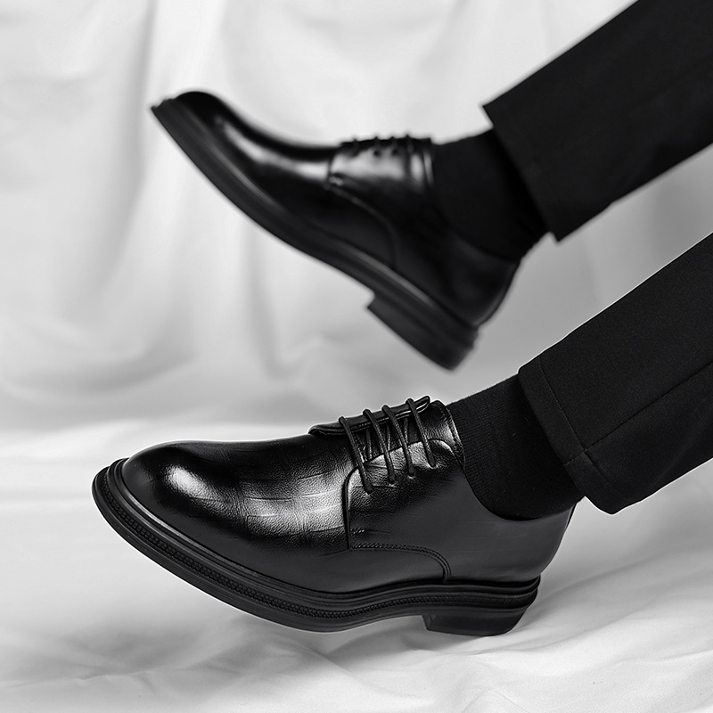 Sepatu Kulit Model Baru 2025 Sepatu Kasual Pria Kulit Asli Setelan Hitam Pria Pakaian Formal Bisnis Alas Tebal Sepatu Pengantin Pria