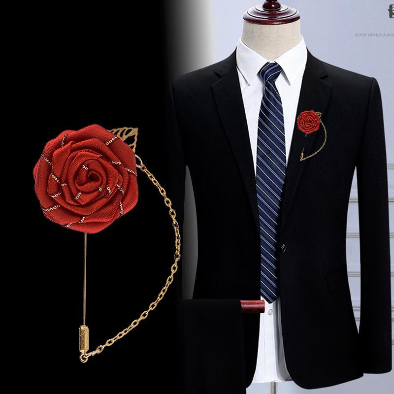 Buatan tangan kain mawar rumbai setelan pria bros pernikahan pengantin laki-laki setelan gaun kata pin korsase aksesoris