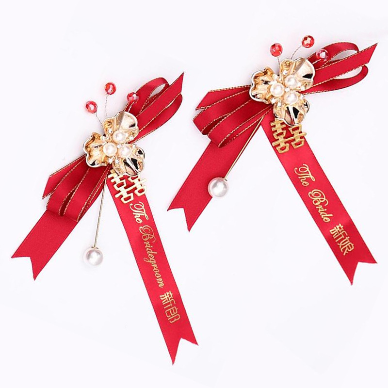 Aksesori gaun pernikahan pengiring pengantin wanita mempelai pria bros kelompok saudara perempuan pakaian Xiuhe Tiongkok saku cheongsam