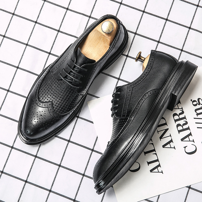 Sepatu Kulit Pria Sepatu Kulit Warna Hitam Sol Tebal Sol Tebal Bernapas Setelan Kasual Bisnis Inggris Bernapas Pria Sepatu Pernikahan Pria