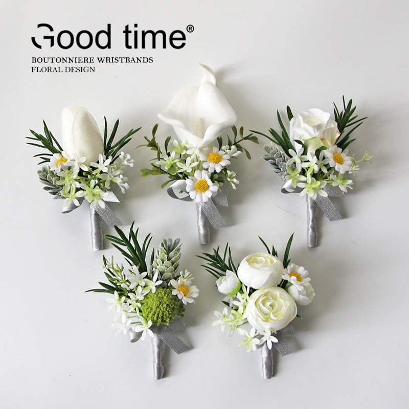 IYR7 bunga pergelangan tangan korsase hijau putih Mori mawar luar ruangan pernikahan pengantin laki-laki jaket bulu pengiring pengantin simpul bunga tangan gaun pernikahan