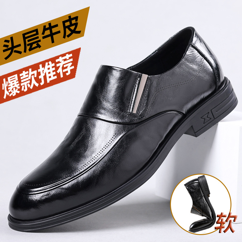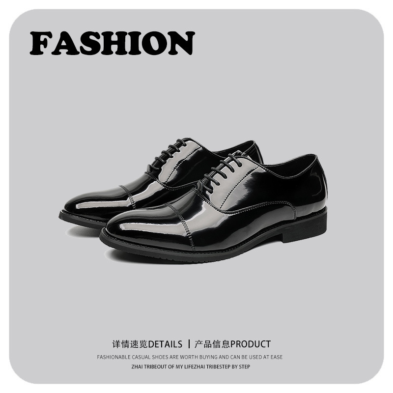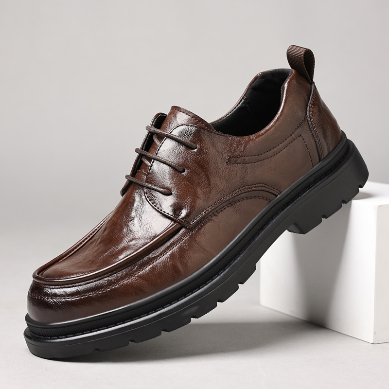 Sepatu Pria Inggris Sepatu Kulit Kasual Pria Sol Tebal Pakaian Formal Bisnis Pengantin Pria Kulit Asli Hitam Sepatu Pernikahan Pria