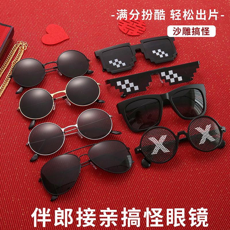 Pengiring pengantin kacamata hitam alat peraga mosaik bar pernikahan pernikahan kacamata bulat pangeran kacamata pernikahan