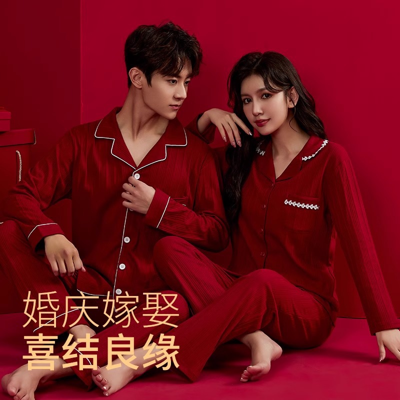 Hadiah pernikahan untuk pengantin dan pengantin pria praktis piyama merah katun murni setelan wanita kotak hadiah pasangan baru rasa tinggi mahar