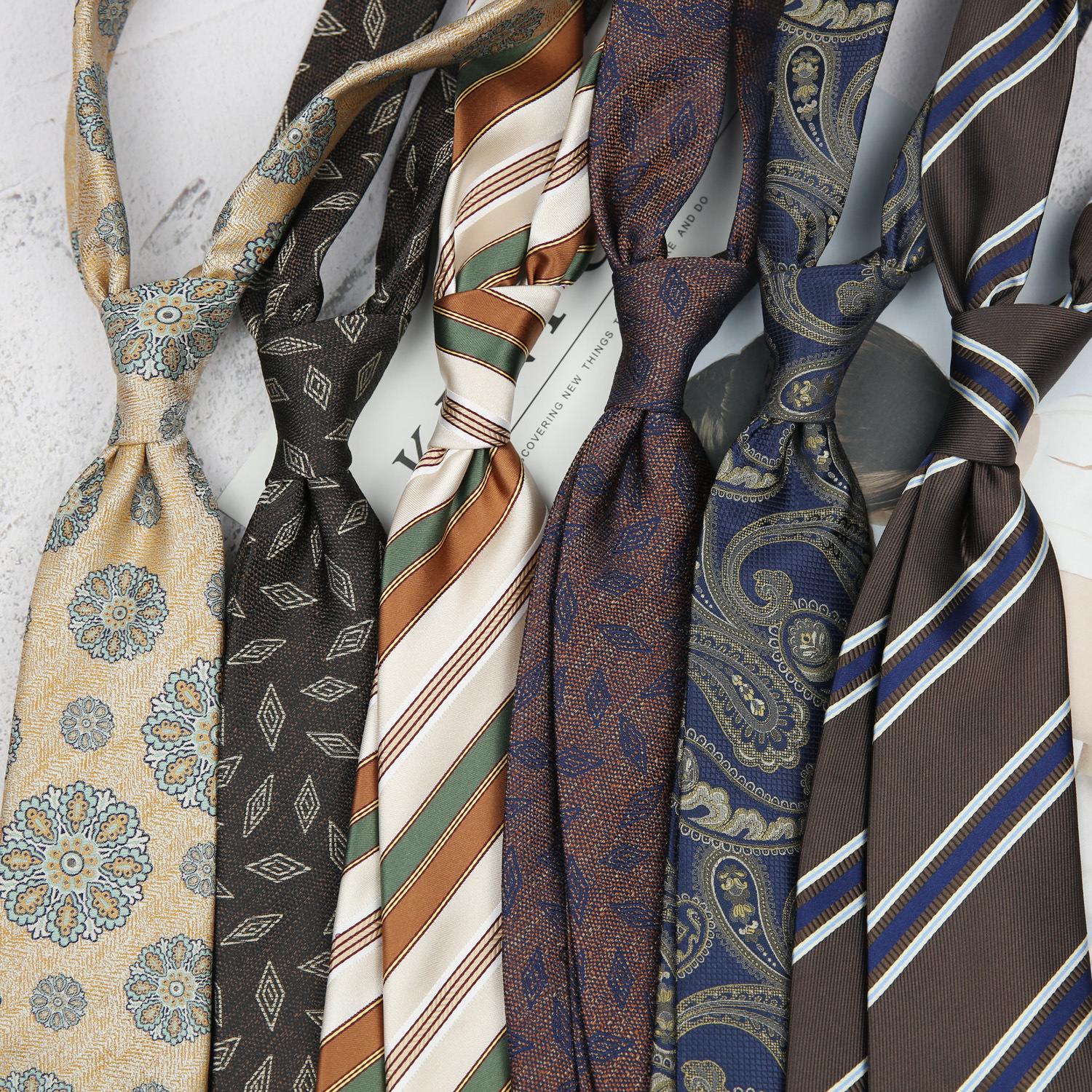 8cm dasi pria pakaian formal pernikahan pengantin laki-laki bergaris tangan bermain setelan bisnis toko dasi modis coklat