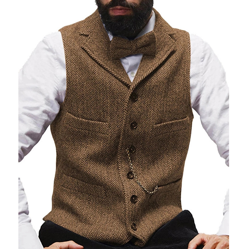 Cross-Border rompi pria pola herringbone kerah Zhongshan coklat rompi gaun pernikahan pengantin pria setelan rompi
