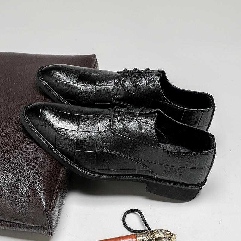 Sepatu formal bisnis pria, sneaker kulit gaya Inggris nyaman bernafas kasual penambah tinggi musim gugur