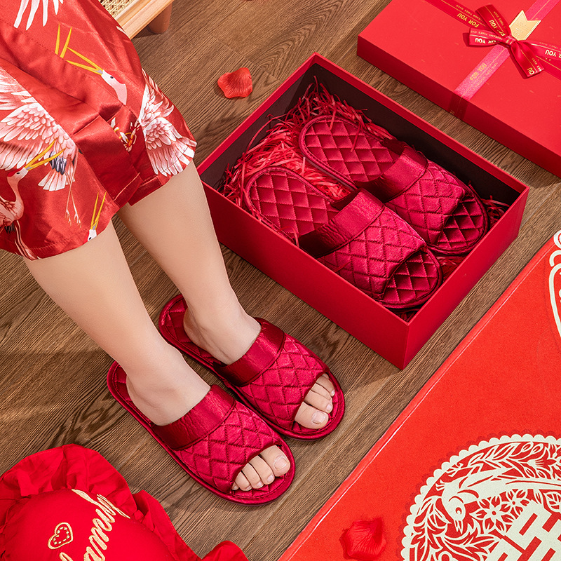 Sandal Merah Pengantin Baru Pernikahan Sepasang Pengantin Senior Musim Panas Meriah Mandi Anti Licin Gaun Pagi Pasangan Sepatu Pernikahan
