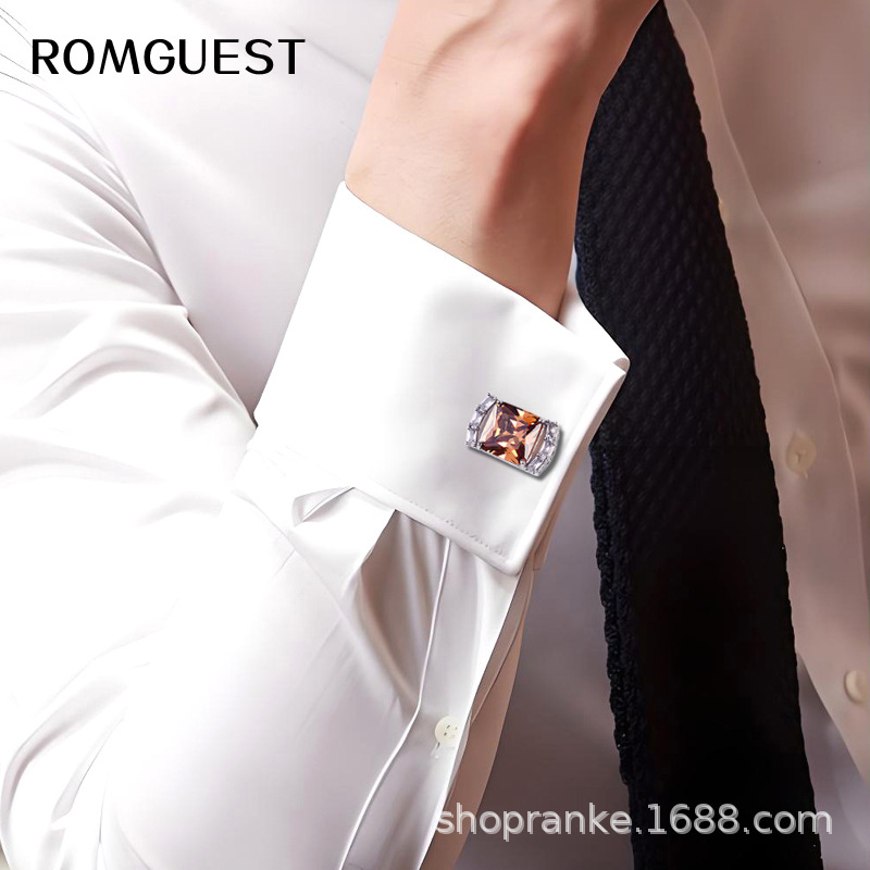 Kemeja Gaya Perancis Warna Kopi Bertatahan Berlian Persegi Kancing Manset Paku Manset Pernikahan Pengantin Pria Aksesori Jas Pernikahan Kancing Manset Mudah Dipadu Padan