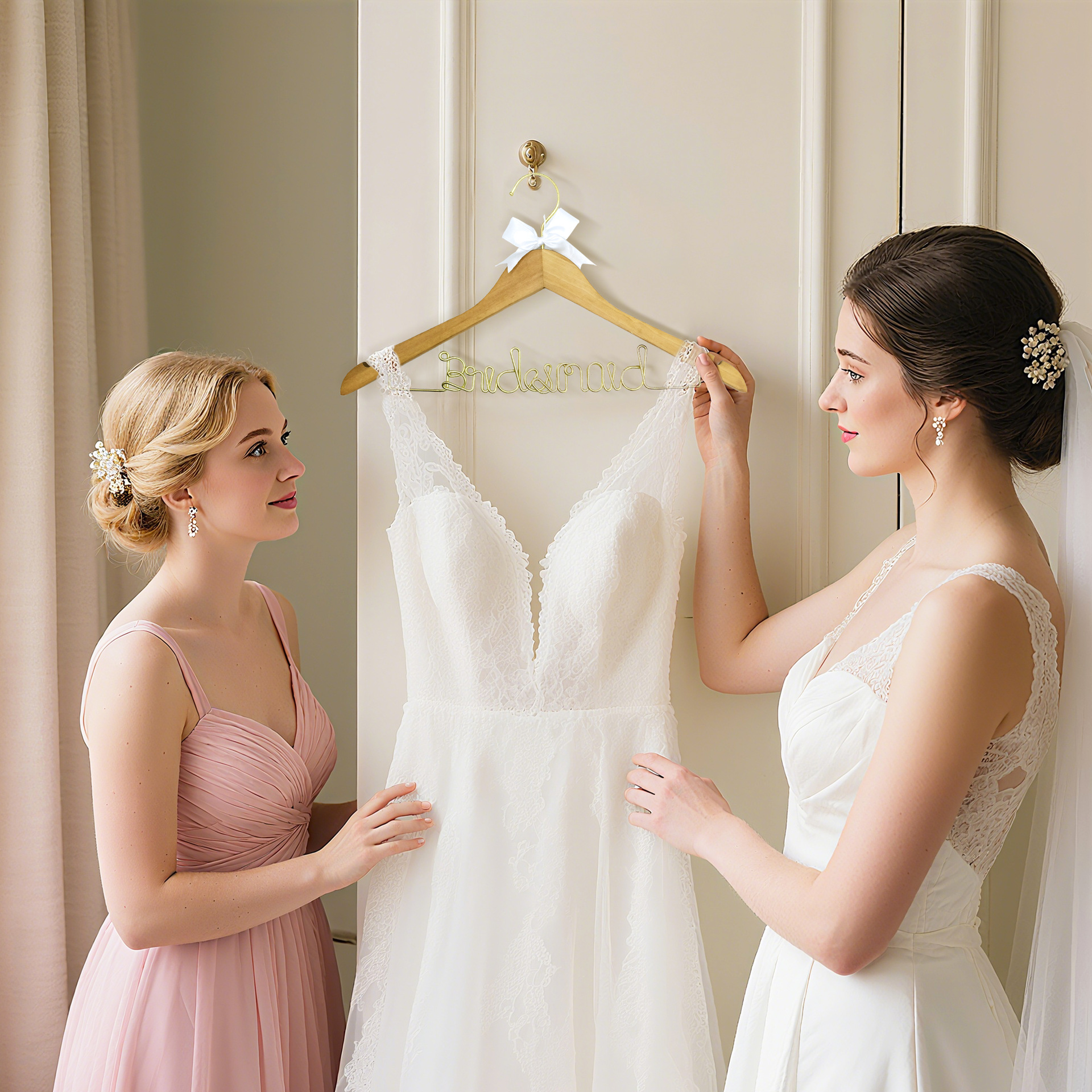 OQ5M grosir gantungan pernikahan pengantin pria gantungan pernikahan pengantin wanita sepasang hadiah pernikahan pakaian kayu mendukung renda Xi