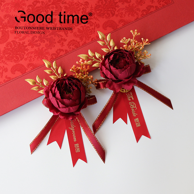 Kardigan merah gaya Tiongkok baru gaun phoenix korsase naga dan pengantin laki-laki ruang pengiring pengantin perempuan bunga pergelangan tangan ayah ibu fotografi