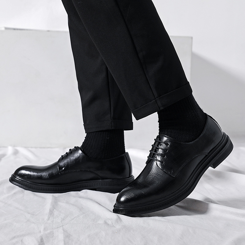 Sepatu Kulit Pria Pakaian Formal Bisnis Musim Semi Musim Gugur 2024 Model Baru Kasual Inggris Setelan Warna Hitam Sepatu Pengantin Pria