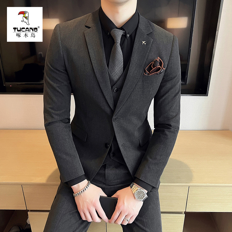 Setelan Jas Pria Jaket Bisnis Kasual Musim Semi Musim Gugur Baju Pengiring Pria Pakaian Formal Profesional Pernikahan Pengantin Pria Setelan Kecil
