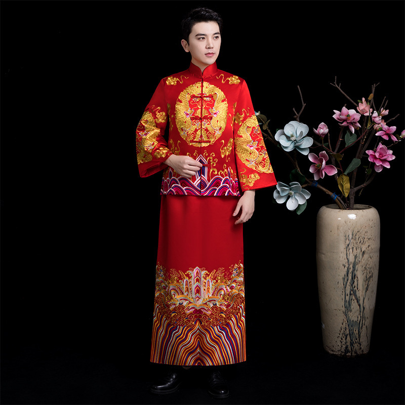 Setelan Xiuhe Pria Pakaian Pernikahan Pakaian Pengantin Pria Jubah Naga dan Phoenix 2022 Gaun Pernikahan Tradisional Xiuhe Pria Bordir Tren Nasional