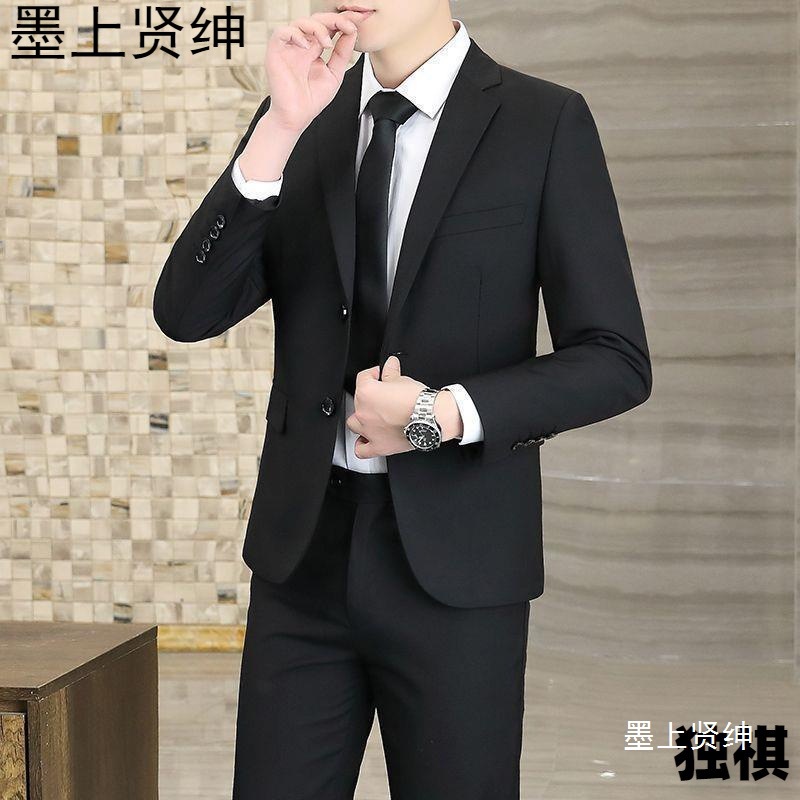 Setelan bisnis pria, pakaian dua potong untuk pengantin laki-laki gaya Korea slim fit musim gugur dan musim dingin