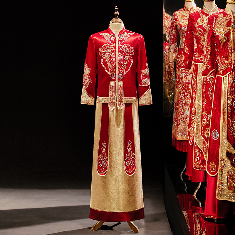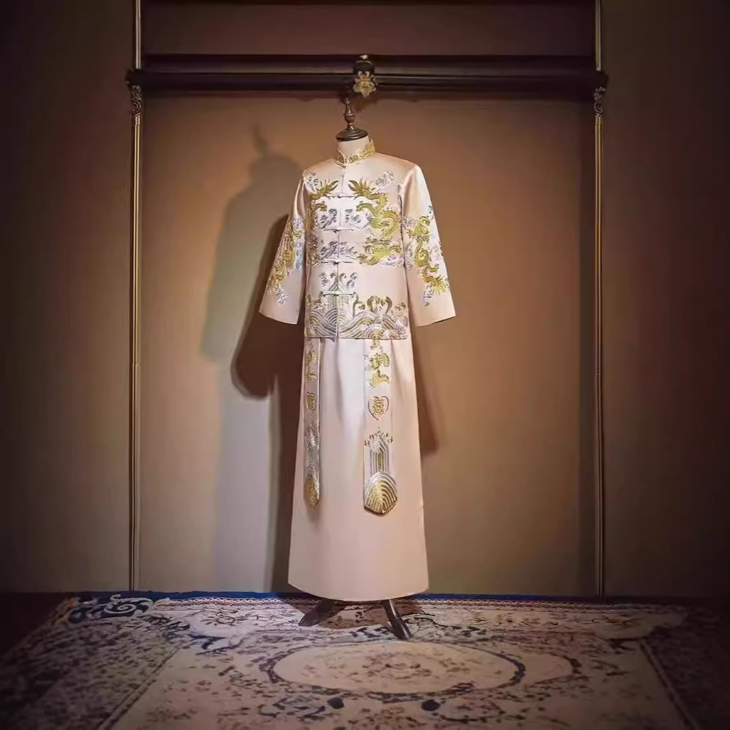 Gaun pengantin pria, pakaian pernikahan baru musim semi dan musim panas 2024, Gaun Xiuhe pria