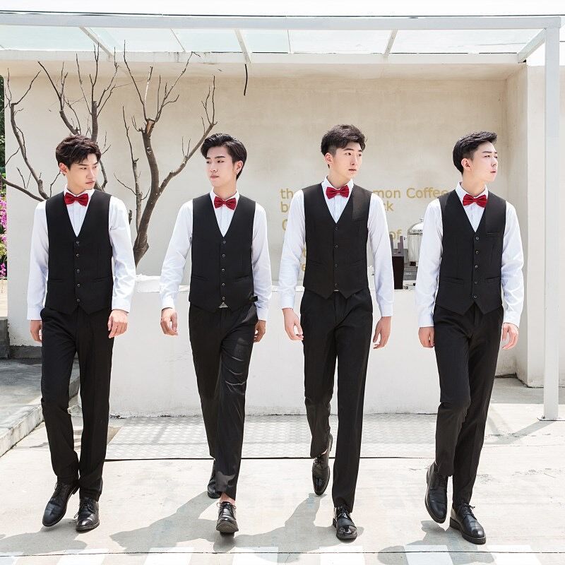 Pakaian mempelai pria, setelan ujian Seni pria, pakaian pria kelompok pengiring pengantin hitam, setelan kostum paduan suara untuk pria