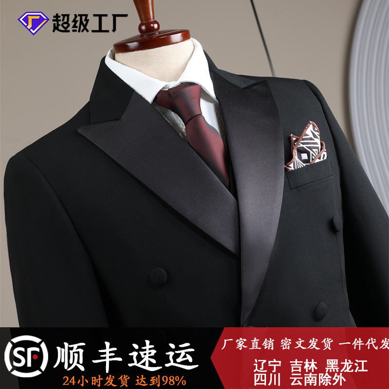 Setelan pakaian pernikahan pria, kelas atas gaun pernikahan pengantin pria Grup Bisnis ramping setelan pakaian host pria