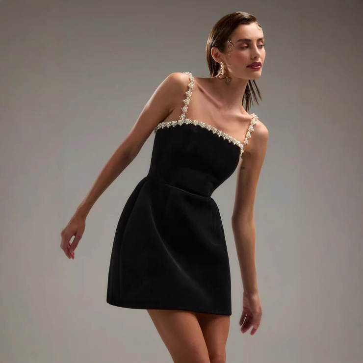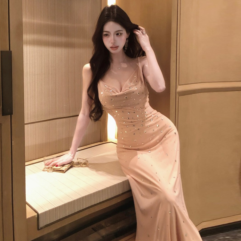 Gaun Suspender Manik-manik Berlian Panas Seksi Selebriti Fashion Lintas Batas Eropa Amerika Gaun Wanita Sumber Pabrik Satu Generasi