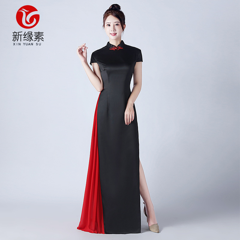 Gaun jamuan gaya Tiongkok, Gaun malam hitam bahu terbuka gaya Tiongkok, Gaun jamuan makan ramping elegan, penawaran khusus 2023