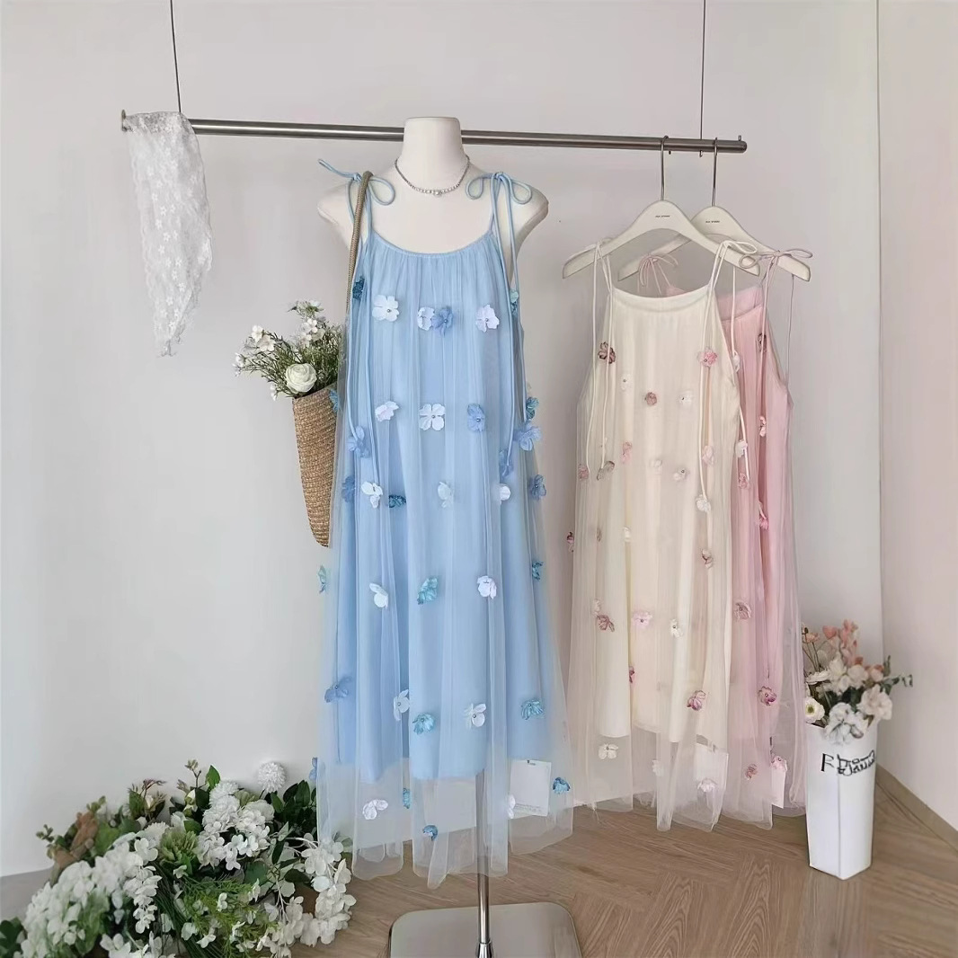 Kerajinan Berat Bunga Tiga Dimensi Bunga Buatan Tangan Tali Suspender Bunga Sentuhan Biru Gadis Niche Gaun Gaun Pengantin Ringan
